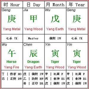 BAZI a direct translation would be Eight Characters! Following a table to make sure you understand what it means: