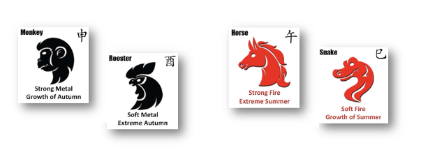 Iron, Gold, Monkey and Rooster see Sun, Fire, Snake and Horse health scenario;